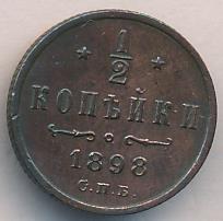 Лицевая сторона — вензель Александра II в венке из лавровой и дубовой ветвей; оборотная — обозначение номинала (1/2 копейки) и дата. Нормативный вес — 1,64 грамма, гурт рубчатый.