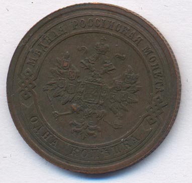 Лицевая сторона — двуглавый орел, надпись МЕДНАЯ РОССIЙСКАЯ МОНЕТА и обозначение номинала (одна копейка); оборотная — обозначение номинала (1 копейка) в бусовом ободке и дата. Нормативный вес — 3,28 грамма, гурт рубчатый.