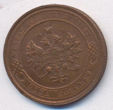 Лицевая сторона — двуглавый орел, надпись МЕДНАЯ РОССIЙСКАЯ МОНЕТА и обозначение номинала (одна копейка); оборотная — обозначение номинала (1 копейка) в бусовом ободке и дата. Нормативный вес — 3,28 грамма, гурт рубчатый.