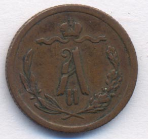 Указом от 21 марта 1867 года Александр II утверждает 50-рублевую стопу для медных монет. Новые монеты получают усложненное оформление, дополнительным отличием от прежних выпусков служит рубчатый гурт (чеканка ведется без предварительного гурчения кружков в неразъемном рубчатом кольце).