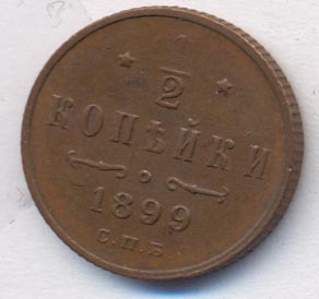 Лицевая сторона — вензель Александра II в венке из лавровой и дубовой ветвей; оборотная — обозначение номинала (1/2 копейки) и дата. Нормативный вес — 1,64 грамма, гурт рубчатый.