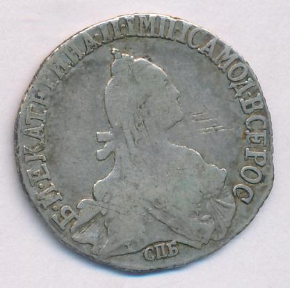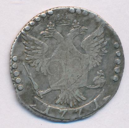 Выделяют два типа - «с шарфом на шее» и без него. Монеты 1764 года ММД со знаком гравера выполнены штемпелями полуполтин. На оборотной стороне монеты — двадцать счетных точек. Лицевая сторона — портрет императрицы и надпись «Б М ЕКАТЕРИНА II IМП I САМОД ВСЕРОС», оборотная — двуглавый орел, обозначение номинала цифрой и счетными точками и дата. Проба — 750, нормативный вес — 4,77 грамма, гурт — шнур.