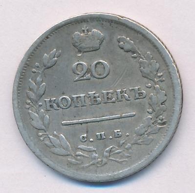 Лицевая сторона - двуглавый орел и дата, оборотная — обозначение номинала (20 копеекъ) в венке из лавровой и дубовой ветвей. Проба до 1813 года — 750, нормативный вес — 4,80 грамма; после 1813 года — проба 868, нормативный вес — 4,15 грамма.