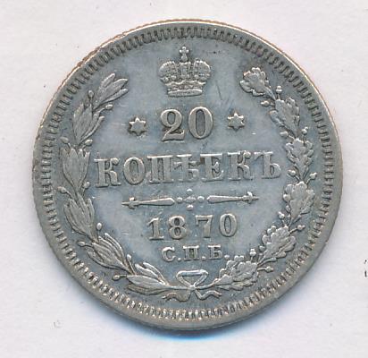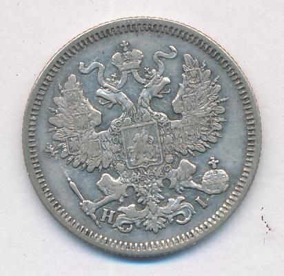 Лицевая сторона — гербовый орел, оборотная —обозначение номинала (20 копеекъ), окруженное венком из лавровой и дубовой ветвей и дата.