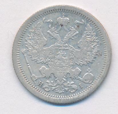 Лицевая сторона — гербовый орел, оборотная —обозначение номинала (20 копеекъ), окруженное венком из лавровой и дубовой ветвей и дата.