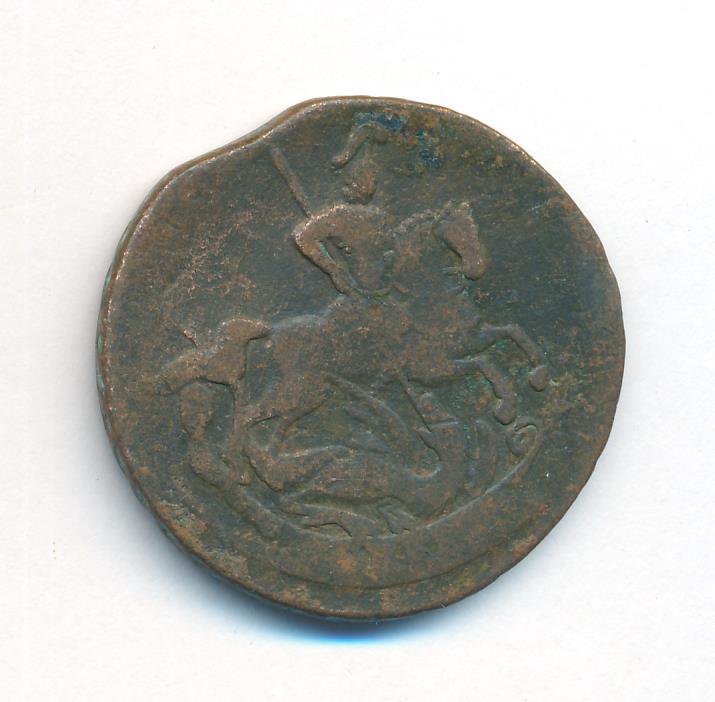 Лицевая сторона — Георгий Победоносец и обозначение номинала (две копейки) в картуше, оборотная — сложный симметричный вензель Елизаветы Петровны и дата. Нормативный вес — 20,48 грамма.