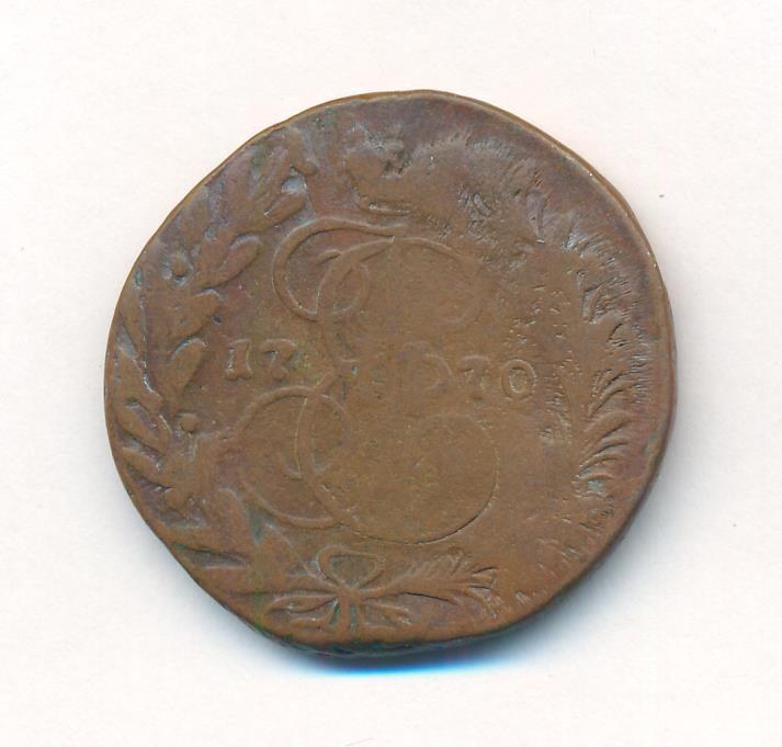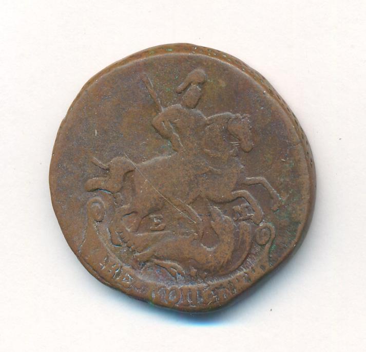 Лицевая сторона — Георгий Победоносец и обозначение номинала (две копейки) в картуше, оборотная — вензель Екатерины II и дата. Нормативный вес — 20,48 грамма, гурт — сетка или шнур.