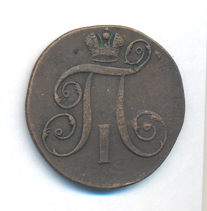 Лицевая сторона — вензель Павла I под короной, оборотная — номинал (2 копейки) и дата. Нормативный вес — 20,48 грамма, гурт — шнур.