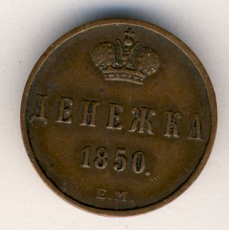 Лицевая сторона — вензель Николая I, оборотная — обозначение номинала (денежка) и дата. Нормативный вес — 2,56 грамма, гурт гладкий.