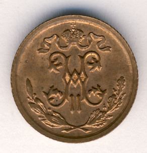 Лицевая сторона — вензель Александра II в венке из лавровой и дубовой ветвей; оборотная — обозначение номинала (1/2 копейки) и дата. Нормативный вес — 1,64 грамма, гурт рубчатый.