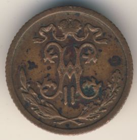 Лицевая сторона — вензель Александра II в венке из лавровой и дубовой ветвей; оборотная — обозначение номинала (1/2 копейки) и дата. Нормативный вес — 1,64 грамма, гурт рубчатый.