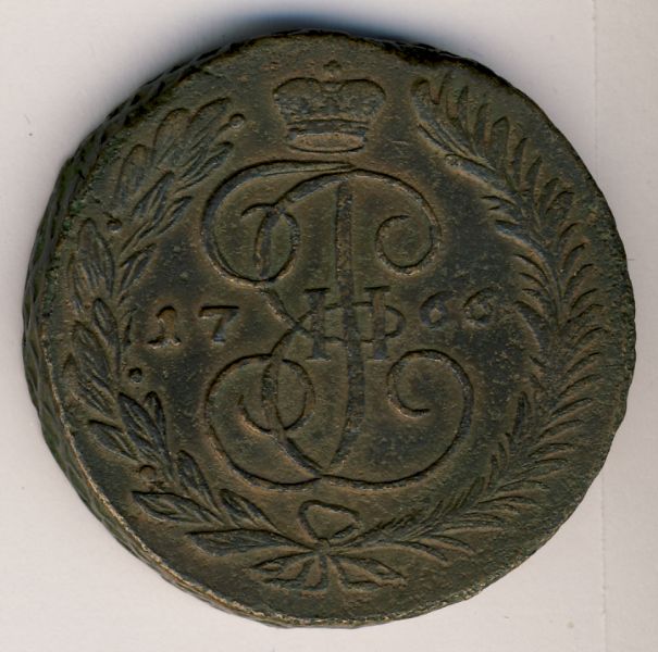 Указом от 27 января 1763 года Екатерина II прекращает перечеканку тяжелых монет 16-рублевой стопы в легкие (32-рублевой стопы) и начинает обратный процесс. Медные монеты приобретают тот же вид, что они имели при Елизавете, меняется лишь вензель императрицы.