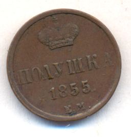 Лицевая сторона — вензель Николая I, оборотная — обозначение номинала (полушка) и дата. Нормативный вес — 1,28 грамма, гурт гладкий.