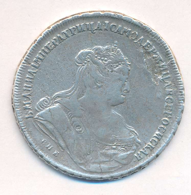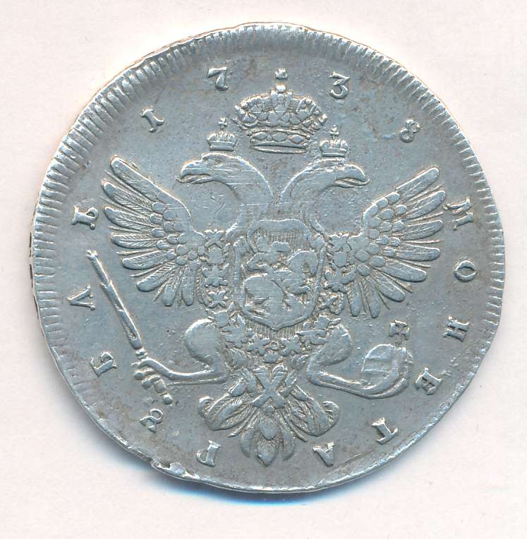 На первых рублях 1738 года не имеющих знака двора, лицевые штемпели сочетаются с двумя типами орла — московским и петербургским.