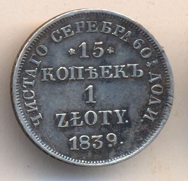 Указом от 15 октября 1832 года «для удобства торговых сношений» Николай I добавляет в ряд серебряных монет новый номинал — 15 копеек, соответствующий одному польскому злотому. Указом от 1 мая 1834 года разрешается чеканка всех номиналов Варшавскому двору. Для организации штемпельного производства из Петербурга 19 июня того же года высылаются рисунки, четыре пары штемпелей и четыре образцовых монеты.