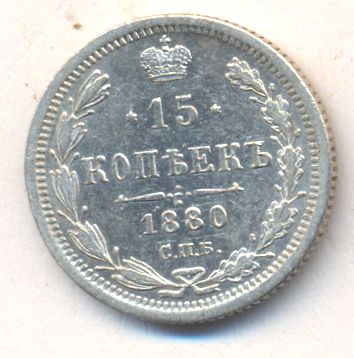Лицевая сторона — гербовый орел, оборотная —обозначение номинала (15 копеекъ), окруженное венком из лавровой и дубовой ветвей и дата.