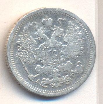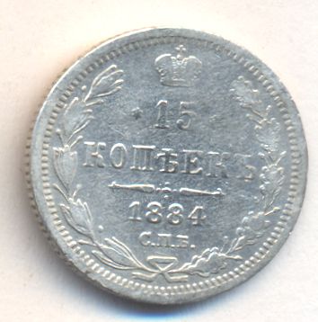 Лицевая сторона — гербовый орел, оборотная —обозначение номинала (15 копеекъ), окруженное венком из лавровой и дубовой ветвей и дата.