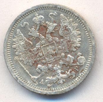 Лицевая сторона — гербовый орел, оборотная —обозначение номинала (15 копеекъ), окруженное венком из лавровой и дубовой ветвей и дата.