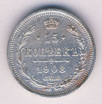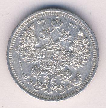 Лицевая сторона — гербовый орел, оборотная —обозначение номинала (15 копеекъ), окруженное венком из лавровой и дубовой ветвей и дата.