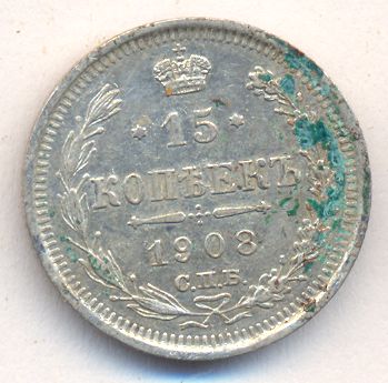 Лицевая сторона — гербовый орел, оборотная —обозначение номинала (15 копеекъ), окруженное венком из лавровой и дубовой ветвей и дата.
