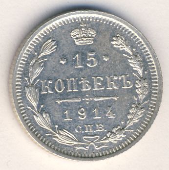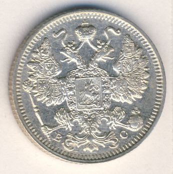 Лицевая сторона — гербовый орел, оборотная —обозначение номинала (15 копеекъ), окруженное венком из лавровой и дубовой ветвей и дата.