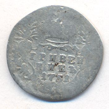 Лицевая сторона — портрет и надпись «Б М Елисаветъ I IMP I САМОД ВСЕРОС», оборотная — обозначение номинала (гривенникъ) и дата. Проба — 750 (с 1746 года - 802), нормативный вес — 2,59 грамма (с 1755 года — 2,42). Гурт — шнур.
