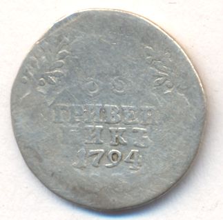 Медальер — Тимофей Иванов ( без знака или TI в рукаве). На оборотной стороне монеты — обозначение номинала в картуше под короной.