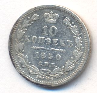 Лицевая сторона — новый гербовый орел с поднятыми крыльями, оборотная —обозначение номинала (10 копеекъ), окруженное венком из лавровой и дубовой ветвей и дата. Проба — 868, нормативный вес — 2,07 грамма.