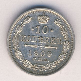 Лицевая сторона — гербовый орел, оборотная —обозначение номинала (10 копеекъ), окруженное венком из лавровой и дубовой ветвей и дата.