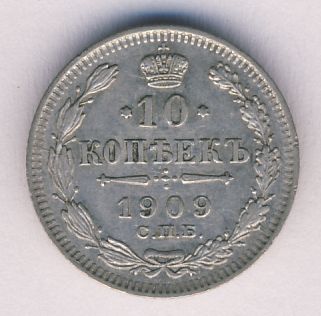 Лицевая сторона — гербовый орел, оборотная —обозначение номинала (10 копеекъ), окруженное венком из лавровой и дубовой ветвей и дата.