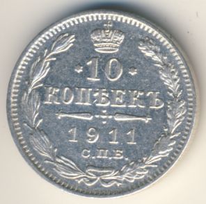 Лицевая сторона — гербовый орел, оборотная —обозначение номинала (10 копеекъ), окруженное венком из лавровой и дубовой ветвей и дата.