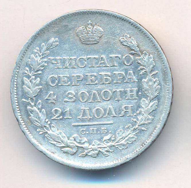 Выделяют три типа орла. Лицевая сторона - двуглавый орел, дата и надпись «МОНЕТА РУБЛЬ», оборотная — окруженная венком из лавровой и дубовой ветвей надпись «ЧИСТАГО СЕРЕБРА 4 ЗОЛОТН 21 ДОЛЯ». Проба — 868, нормативный вес — 20,73 грамма.
