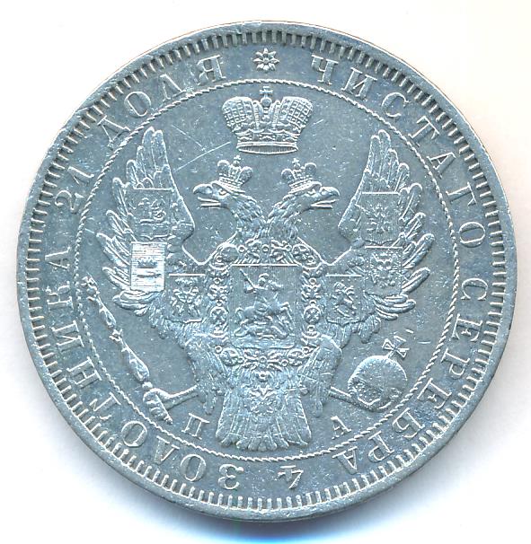 Лицевая сторона — новый гербовый орел с поднятыми крыльями и надпись «ЧИСТОГО СЕРЕБРА 4 ЗОЛОТНИКА 21 ДОЛЯ», оборотная — надпись «МОНЕТА РУБЛЬ», окруженная венком из лавровой и дубовой ветвей и дата.