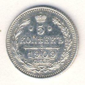 Лицевая сторона — гербовый орел, оборотная —обозначение номинала (5 копеекъ), окруженное венком из лавровой и дубовой ветвей и дата.