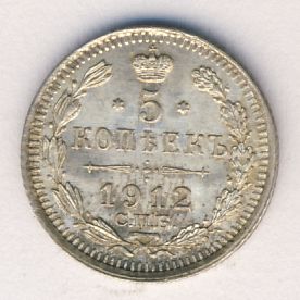Лицевая сторона — гербовый орел, оборотная —обозначение номинала (5 копеекъ), окруженное венком из лавровой и дубовой ветвей и дата.