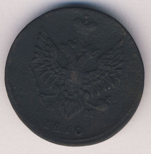 Манифестом от 29 августа 1810 года для медных монет всех номиналов стопа увеличивается в полтора раза и становится 24 рубля из пуда. В следующие два десятилетия по этой норме чеканятся только двухкопеечники, копейки и деньги, призванные ликвидировать нехватку разменной монеты. В оформлении монет вместо кольцевых ободков на оборотной стороне размещается венок из лавровой и дубовой ветвей, как на серебряной монете.