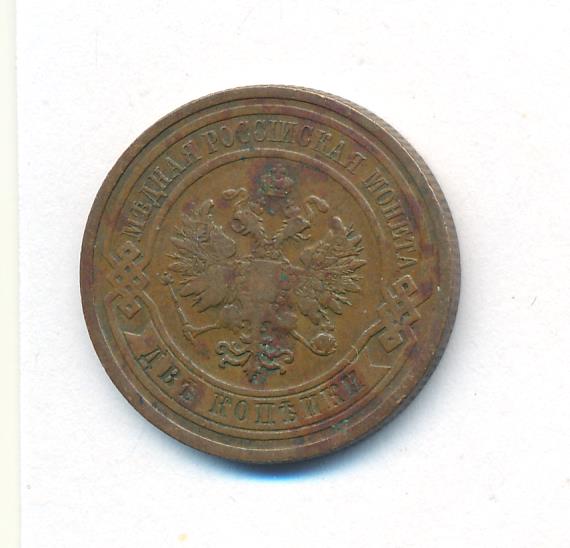 Лицевая сторона — двуглавый орел, надпись МЕДНАЯ РОССIЙСКАЯ МОНЕТА и обозначение номинала (две копейки); оборотная — обозначение номинала (2 копейки) в бусовом ободке и дата. Нормативный вес — 6,55 грамма, гурт рубчатый.