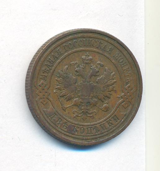 Лицевая сторона — двуглавый орел, надпись МЕДНАЯ РОССIЙСКАЯ МОНЕТА и обозначение номинала (две копейки); оборотная — обозначение номинала (2 копейки) в бусовом ободке и дата. Нормативный вес — 6,55 грамма, гурт рубчатый.
