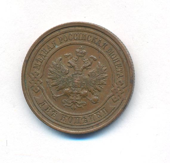 Лицевая сторона — двуглавый орел, надпись МЕДНАЯ РОССIЙСКАЯ МОНЕТА и обозначение номинала (две копейки); оборотная — обозначение номинала (2 копейки) в бусовом ободке и дата. Нормативный вес — 6,55 грамма, гурт рубчатый.