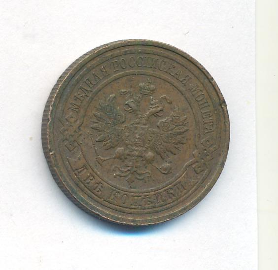 Лицевая сторона — двуглавый орел, надпись МЕДНАЯ РОССIЙСКАЯ МОНЕТА и обозначение номинала (две копейки); оборотная — обозначение номинала (2 копейки) в бусовом ободке и дата. Нормативный вес — 6,55 грамма, гурт рубчатый.