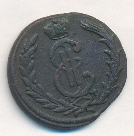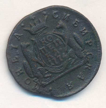 Лицевая сторона - два соболя поддерживают щит с обозначением номинала (копейка) под короной, надпись «СИБИРСКАЯ МОНЕТА». Оборотная — вензель Екатерины II в венке из пальмовой и лавровой ветвей. Гурт — шнур, вес — 6,55 грамма.