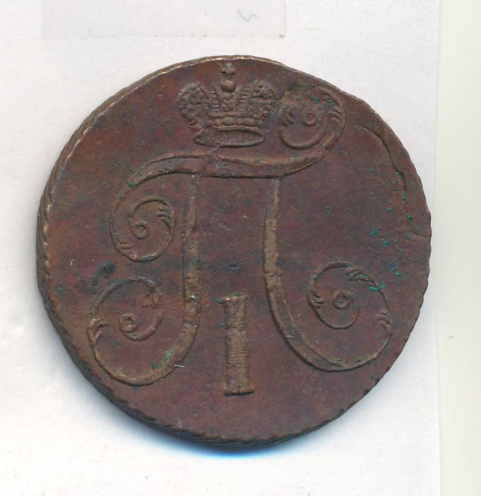 Лицевая сторона — вензель Павла I под короной, оборотная — номинал (2 копейки) и дата. Нормативный вес — 20,48 грамма, гурт — шнур.