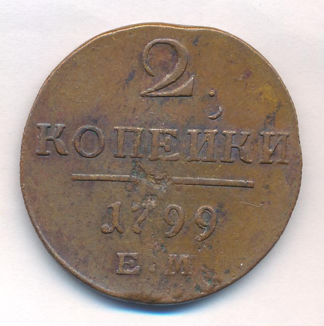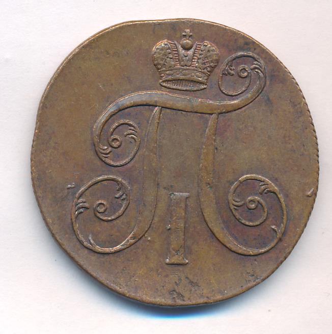 Лицевая сторона — вензель Павла I под короной, оборотная — номинал (2 копейки) и дата. Нормативный вес — 20,48 грамма, гурт — шнур.