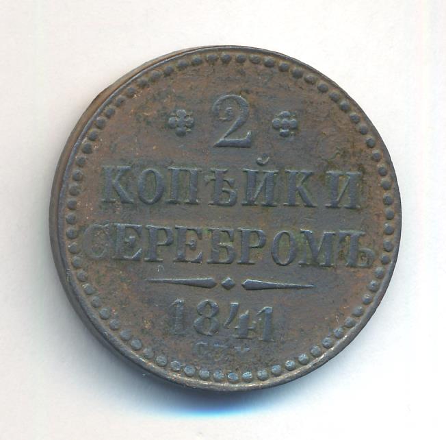 На новых монетах равенство серебряному курсу указано прямо в номинале: «2 КОПЕЙКИ СЕРЕБРОМ». Указ об их выпуске следует 6 сентября 1840 года («О новой медной монете на серебро 16-рублевого в пуде достоинства»). Массовая чеканка началось за год до этого на Екатеринбургском (знак ЕМ) и Сузунском (знак СМ) дворах. В качестве временной меры в 1840-1843 годах к ним подключается Ижорский завод (знак СПМ). С 1844 года после «значительного скопления медной монеты в народном обращении» в Екатеринбурге производство прекращается, а в Сузуне сокращается. Варшавский двор (знак MW), получив разрешение на выпуск общегосударственной монеты, успел отчеканить ее лишь в небольшом количестве в 1848 году.