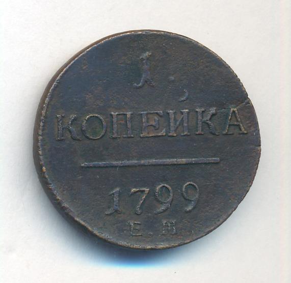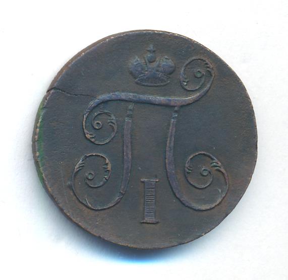 Лицевая сторона — вензель Павла I под короной, оборотная — номинал (1 копейка) и дата. Нормативный вес — 10,24 грамма, гурт — шнур.