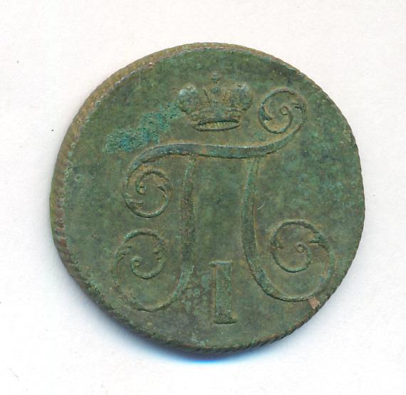 Лицевая сторона — вензель Павла I под короной, оборотная — номинал (1 копейка) и дата. Нормативный вес — 10,24 грамма, гурт — шнур.
