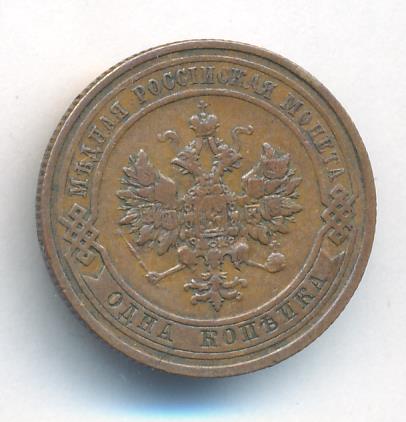 Лицевая сторона — двуглавый орел, надпись МЕДНАЯ РОССIЙСКАЯ МОНЕТА и обозначение номинала (одна копейка); оборотная — обозначение номинала (1 копейка) в бусовом ободке и дата. Нормативный вес — 3,28 грамма, гурт рубчатый.