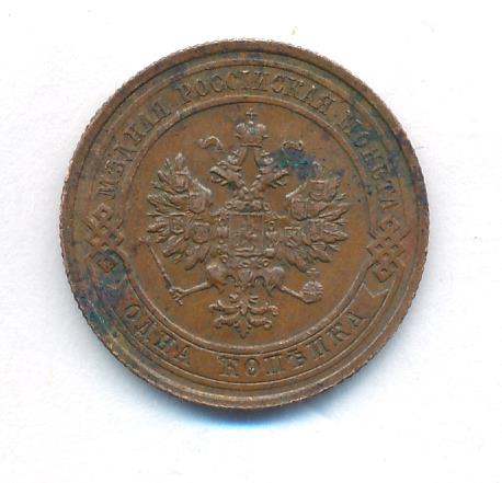 Лицевая сторона — двуглавый орел, надпись МЕДНАЯ РОССIЙСКАЯ МОНЕТА и обозначение номинала (одна копейка); оборотная — обозначение номинала (1 копейка) в бусовом ободке и дата. Нормативный вес — 3,28 грамма, гурт рубчатый.
