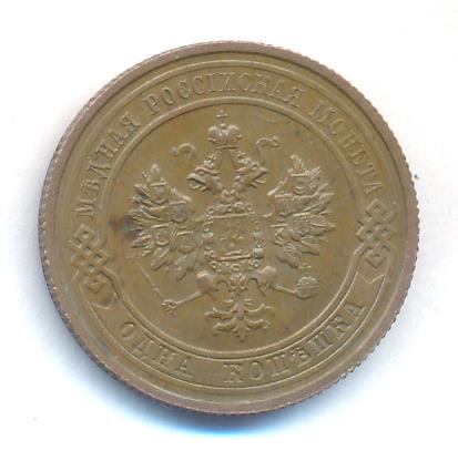 Лицевая сторона — двуглавый орел, надпись МЕДНАЯ РОССIЙСКАЯ МОНЕТА и обозначение номинала (одна копейка); оборотная — обозначение номинала (1 копейка) в бусовом ободке и дата. Нормативный вес — 3,28 грамма, гурт рубчатый.