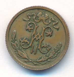 Лицевая сторона — вензель Александра II в венке из лавровой и дубовой ветвей; оборотная — обозначение номинала (1/2 копейки) и дата. Нормативный вес — 1,64 грамма, гурт рубчатый.